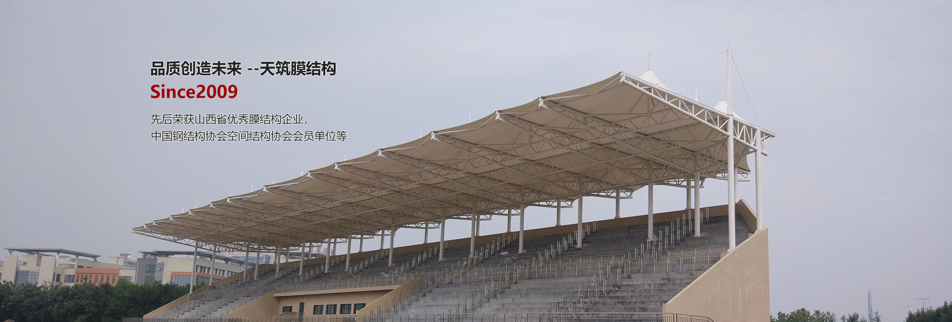 太原天筑膜結(jié)構(gòu)技術(shù)有限公司主要從事膜結(jié)構(gòu)工程的方案設(shè)計(jì)、結(jié)構(gòu)設(shè)計(jì)、靜動(dòng)力計(jì)算分析、膜材的裁剪設(shè)計(jì)、膜材的加工制作安裝、鋼構(gòu)件的設(shè)計(jì)加工整體安裝及使用維護(hù),集科研開發(fā)與制作安裝為一體的科研生產(chǎn)型企業(yè)。服務(wù)范圍涉及電動(dòng)車/自行車車棚、汽車停車棚、廣場(chǎng)公園景觀張拉膜、新能源充電樁膜結(jié)構(gòu)雨棚、體育場(chǎng)看臺(tái)膜結(jié)構(gòu)、加油站收費(fèi)站膜結(jié)構(gòu)大棚、表演舞臺(tái)膜結(jié)構(gòu)雨棚、廊道遮陽(yáng)棚、永久性膜結(jié)構(gòu)建筑遮陽(yáng)棚、污水池膜結(jié)構(gòu)封閉、充氣膜等膜結(jié)構(gòu)工程的設(shè)計(jì)、制作加工安裝、售后維修服務(wù)。公司立足太原,輻射華北、華中地區(qū)數(shù)十省,是華北地區(qū)專業(yè)性、規(guī)模型的膜結(jié)構(gòu)工程企業(yè)之一。公司成立以來(lái),組織承建了520余項(xiàng)近36萬(wàn)平方米的膜結(jié)構(gòu)工程……